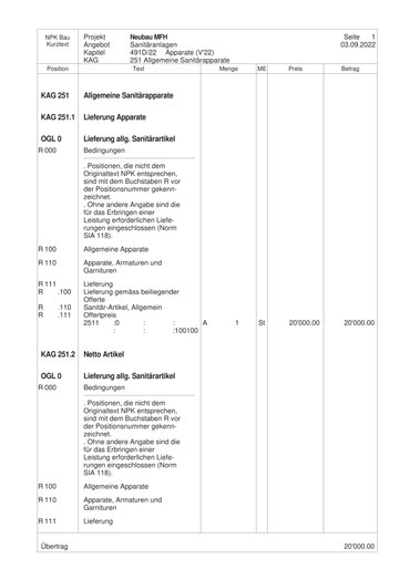 Erstellen von NPK-Konformen Submissionsunterlagen / Leistungsverzeichnisse