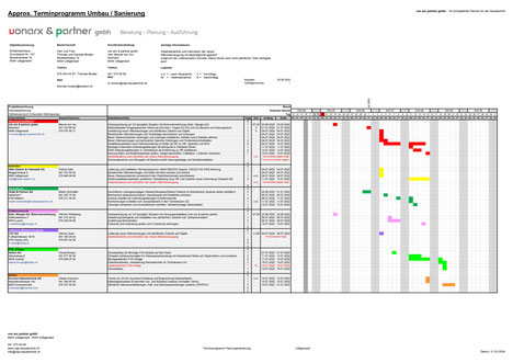 Dazu erstellen wir die unverzichtbaren und notwendigen Terminprogramme mit Hilfe einer Spezialsoftware, welche alle zeitlichen Abläufe während Ihrem Projekt sicherstellen.