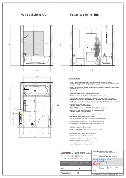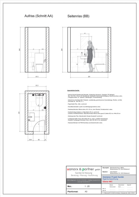 Planung und Anfertigung von Detailplänen für Um- oder Neubauten von Badezimmern und Gäste-WC / Separat-WC